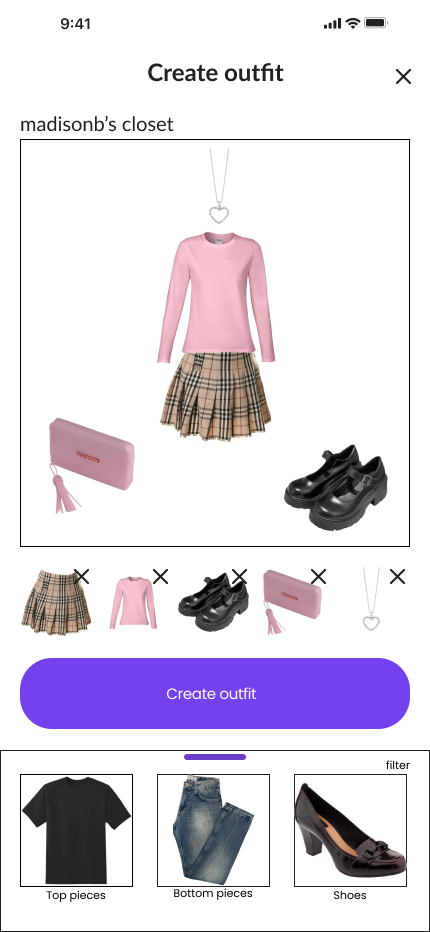 Ourfit is a platform where people can post their clothes, friends, family and other users can make outfits for other people. You can highlight a piece to mark them as 'in need of inspiration'. That way other people can keep this in mind when creating an outfit. After seeing outfits created by other people, users can feel inspired, seeing the way other people look differently at a piece than they do. The same goes for people creating outfits for others. They are challenged with a completely different wardrobe, a completely different style, completely different pieces. They will have to puzzle with unfamiliat pieces, inspiring them to create new ways of thinking about the closet of their own. An exchange of inspiration is a fun way I like to think of this platform.